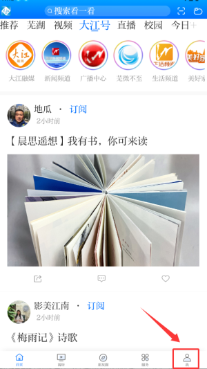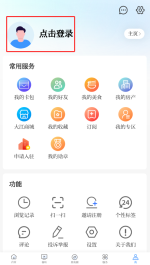 1、启动大江看看APP后,点击界面右下角的"我的"图标进入个人中心页面。
