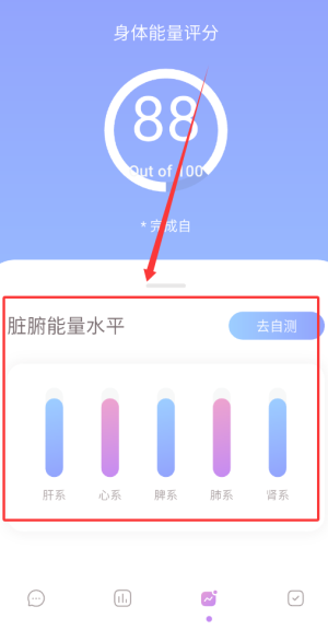 2、一套详细的健康评分,心肝脾肺肾各个器官的状态都用分数直观显示。