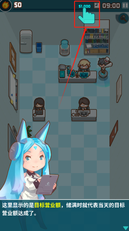 2、看左上角营业额进度条,攒满1000美元就完成当天目标。