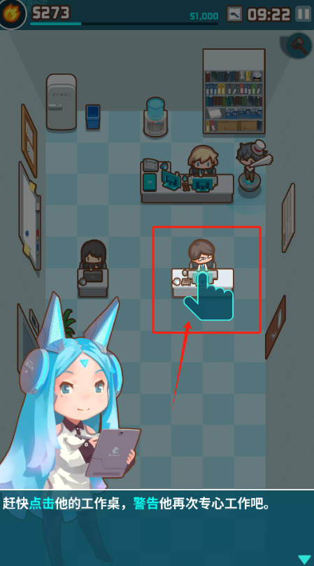 3、点红框里开小差的员工桌子,让他专心工作别偷懒。