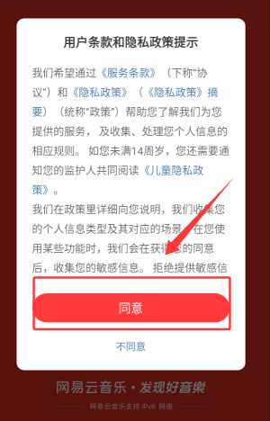 1、初次启动需仔细阅读用户协议条款,确认同意后即可进入应用主界面开启音乐之旅。