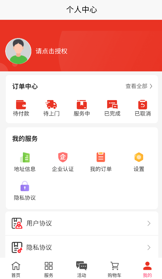 3、个人中心分类管理订单状态:"待支付"、"已预约"、"服务中"和"已完成",支持在线联系师傅修改服务时间。