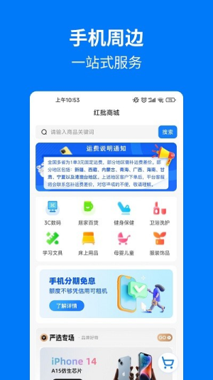 1、手机商城展示100+款在售机型,详细标注配置参数和性能对比。提供AR试机功能,可虚拟体验真机大小和界面操作。