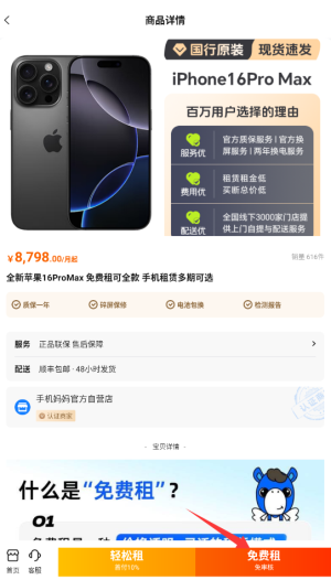 3、点击右下角"免费租"按钮,即可申请试用体验新机服务。