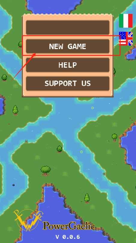 1、点NEWGAME开始新游戏,国旗图标可以切换语言。