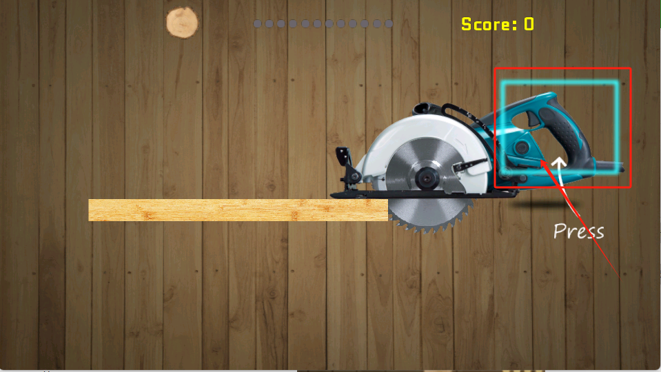 1、点红框里的Press开始游戏,电锯放在木板上,初始分数是0分。