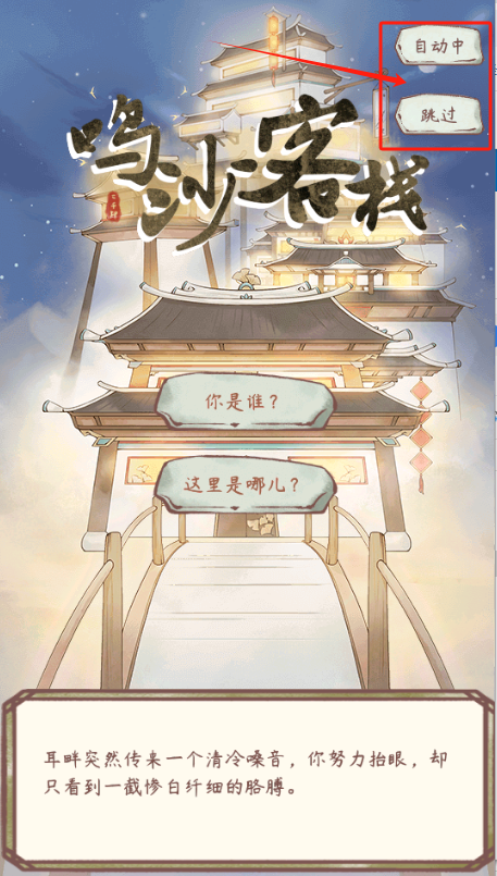 1、点跳过按钮跳过剧情,自动中是自动播放,对话框在讲故事。