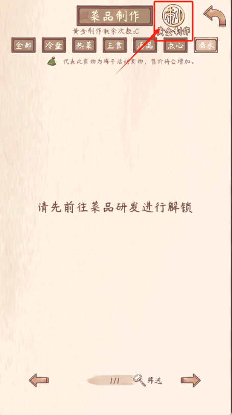 3、选菜品制作做菜,黄金制作要解锁,先研发新菜。