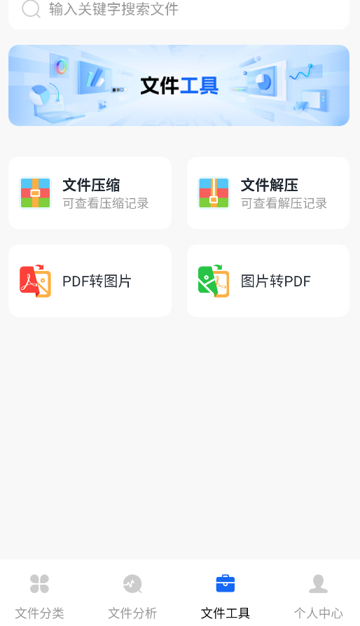 3、工具箱提供PDF转图片、批量压缩/解压等专业处理,压缩时可自定义质量(30%-100%),保持重要文件清晰度。
