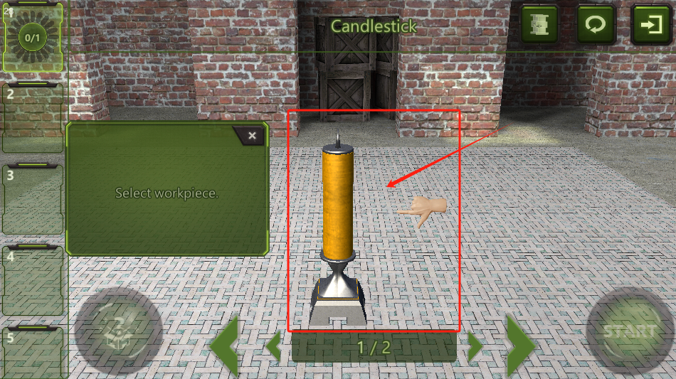 2、点红框里的烛台选工件,左上角0/1表示要完成1个任务。