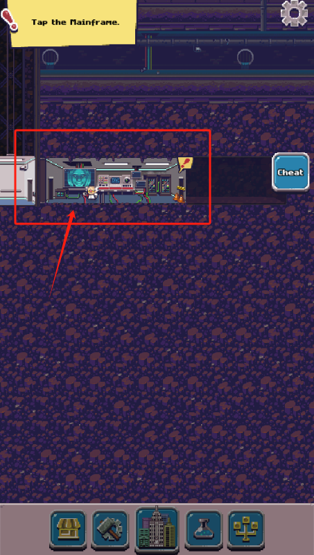 1、点击红色框里的主机房,可以按蓝色作弊按钮,下面一排是各种功能图标。