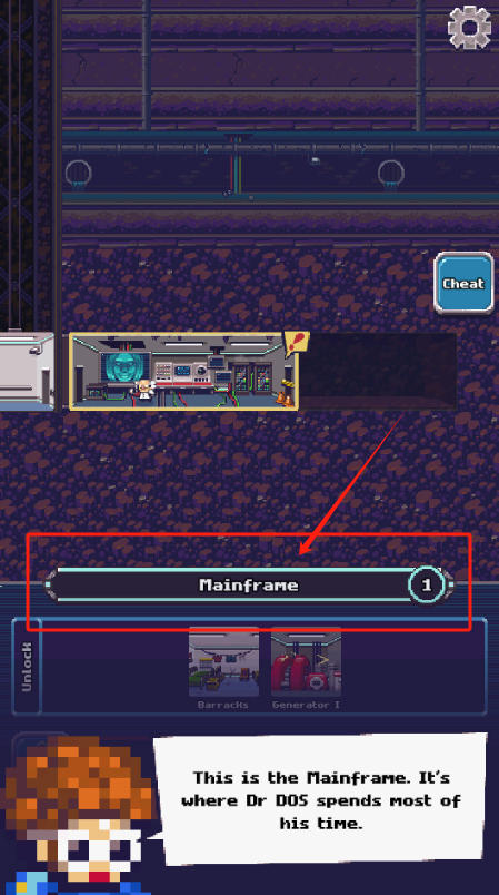 2、找到写着Mainframe的主机房,点解锁按钮,能看到兵营和发电机。