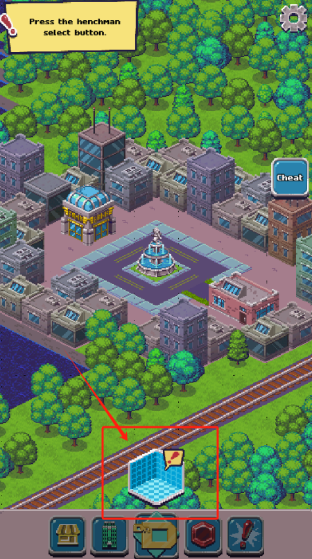 3、在城市里找到蓝色物品,按手下选择按钮,右上角有作弊功能。