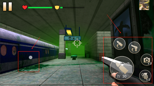 2、左侧是视角控制区域,右侧则是射击与技能按钮,合理分配操作节奏才能快速应对敌人进攻和躲避攻击。
