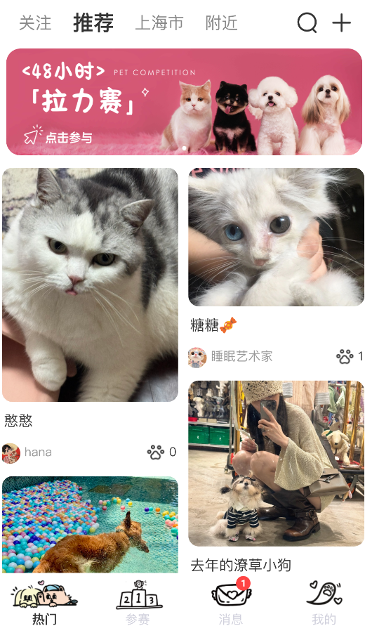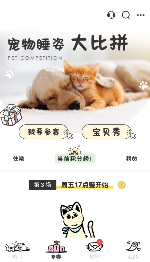 2、进入活动专区,可以报名参加"睡姿大赛"等趣味赛事,晒出你家主子的可爱睡相。