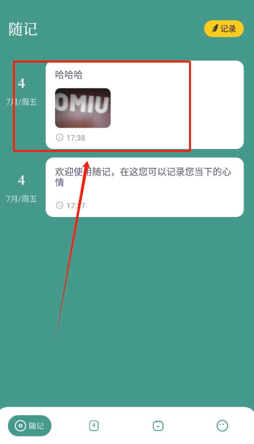 3、返回软件首页,刚才记的随记就整整齐齐显示在列表里,随时能点开查看。