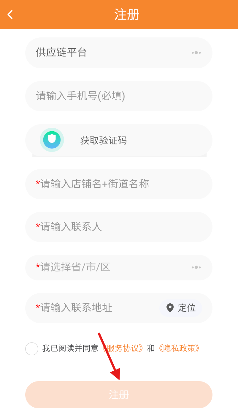3、在注册页面依次填写相关注册信息,确认无误后点击 “注册” 按钮完成账号注册。