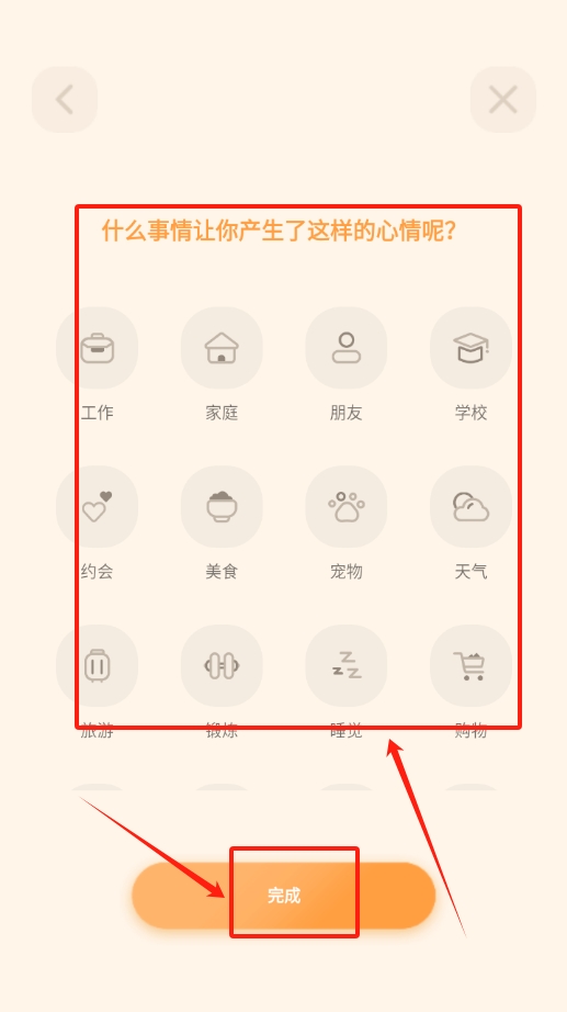 3、从列表里挑出引发这种心情的事儿,确认选好后点击完成就记录好了。
