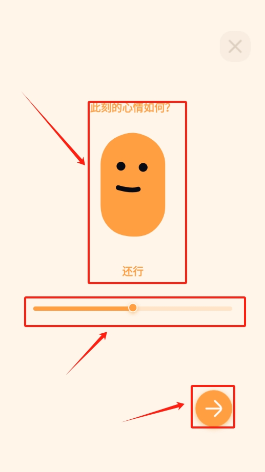 2、出现的横条上有各种心情,左右滑动选一个,再点右箭头继续下一步。