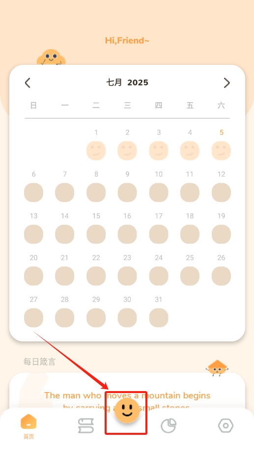 2、创新的日历式情绪追踪模式,每天只需轻轻一点,就能快速标记心情状态,轻松生成可视化的月度情绪变化图谱。