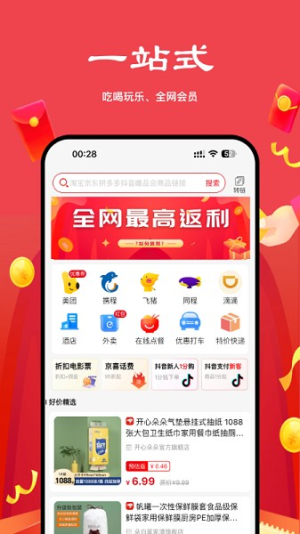 4、生活全场景覆盖:从线上购物到线下消费,涵盖外卖、话费充值等20+生活服务。每周更新特惠清单,发现身边意想不到的折扣。