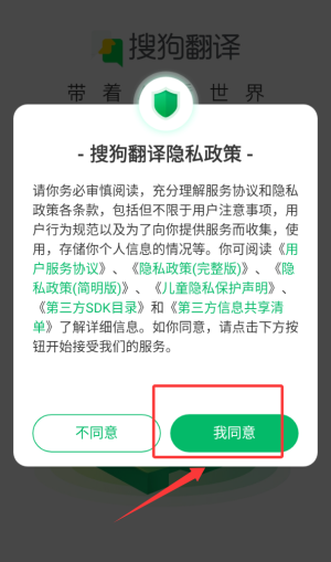 1、首次启动需阅读并确认服务条款后进入翻译界面。