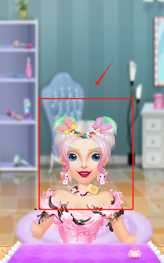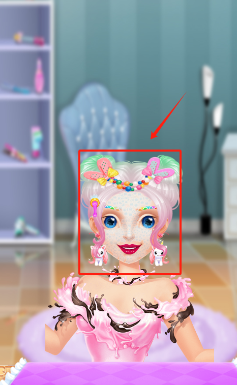 3、看到巧克力酱粉色裙子女孩和周围架子,直接点红字区域就能开始这个可爱角色的换装挑战啦。