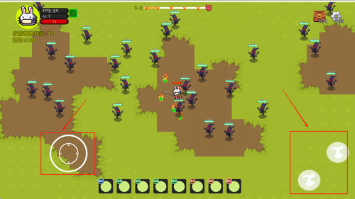2、左侧是角色移动控制区域,右侧则是技能释放按钮,滑动屏幕可切换视角观察战场情况。