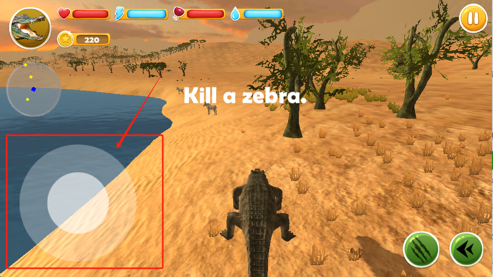 2、用左边摇杆控制鳄鱼,追上斑马完成Kill a zebra任务。