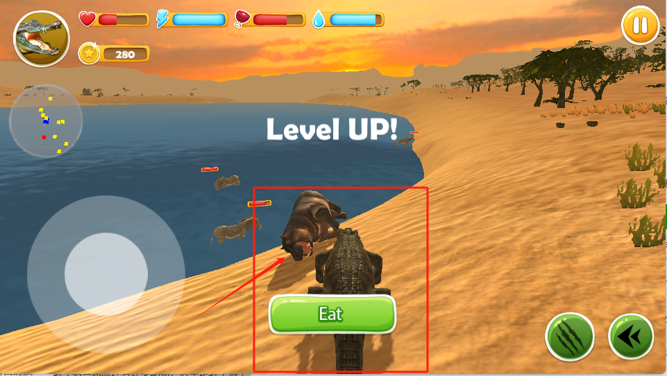 3、鳄鱼升级了,赶紧点Eat吃东西补充体力。