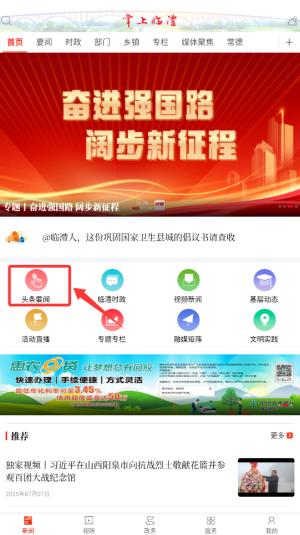 1、进入掌上临澧APP后,在首页导航栏中找到并点击"头条要闻"频道入口。