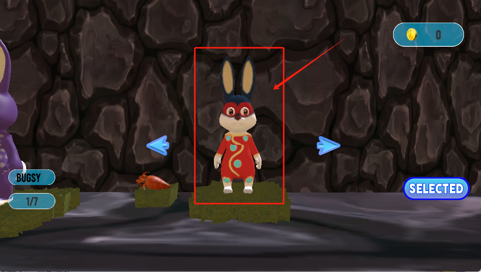 1、点击红框选中的兔子BUGSY,开始游戏冒险,收集胡萝卜打败其他角色。