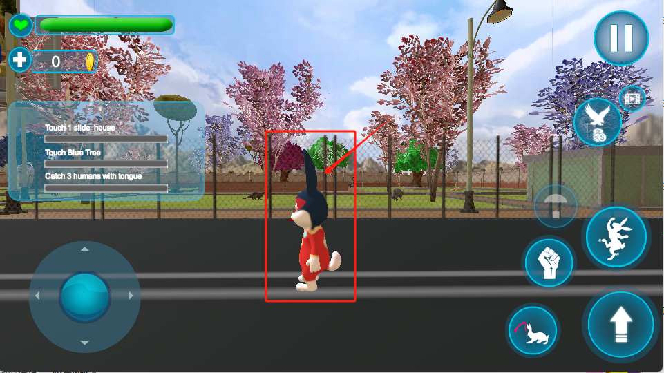 3、点击屏幕触摸房屋移动,点击蓝色树木互动,用舌头抓3个人类完成任务。