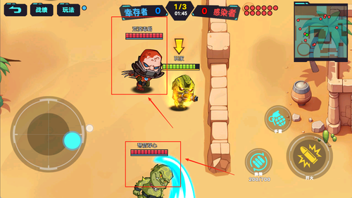 1、玩家需要在地图中灵活走位躲避敌人攻击,关注感染者分布情况并及时做出反应,防止被围攻。