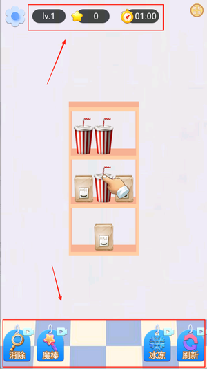 3、通过点击拖动物品完成消除,实现连消之后即可获得大量积分和道具奖励,推进关卡进度。