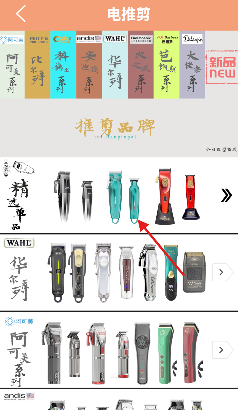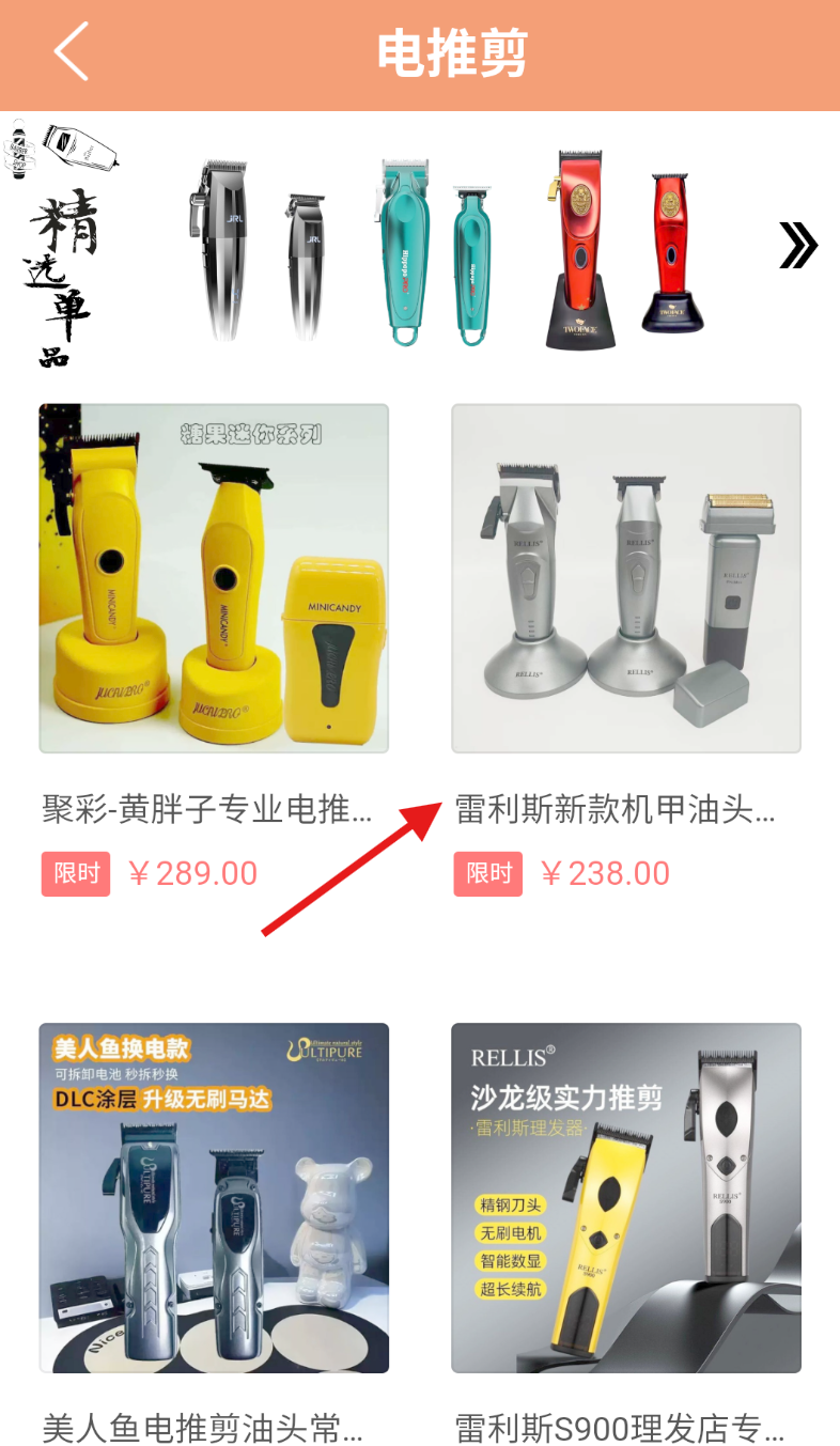 3、在精选单品列表中,浏览各个电推剪商品,找到自己喜欢的款式后点击查看其详细信息。