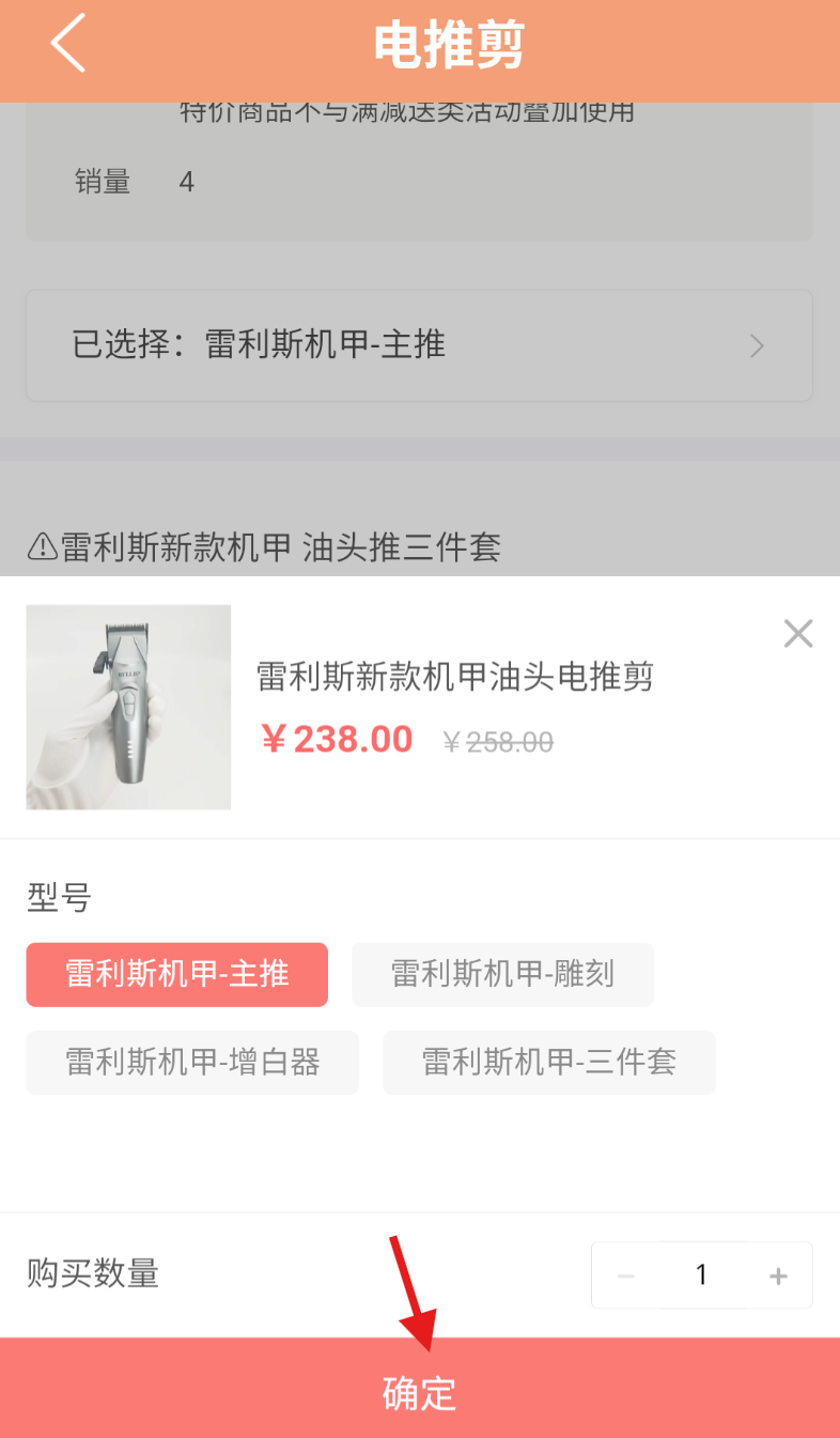 4、若对该电推剪商品满意且符合自身需求,点击页面下方的 “确定” 按钮,即可完成购买操作。