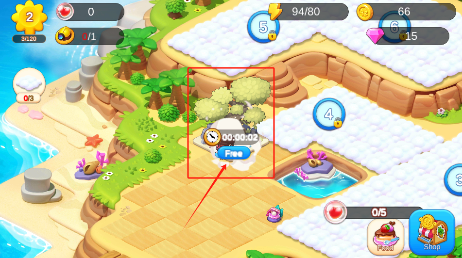 3、点击倒计时树下方Free区域,收集资源并管理金币钻石,完成限时任务目标。