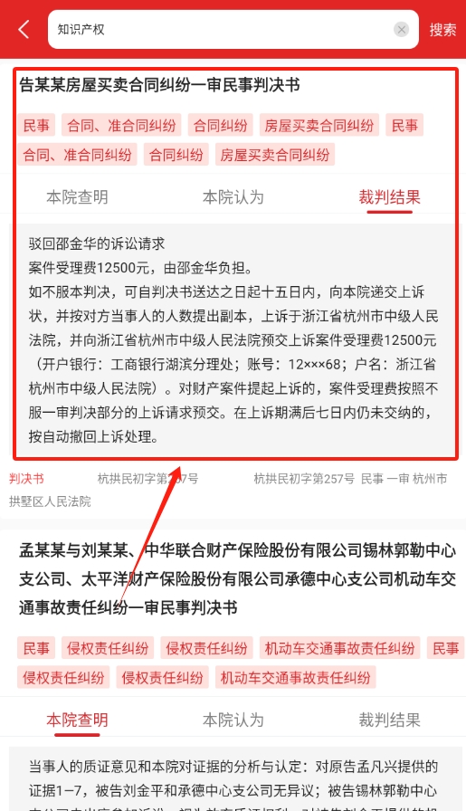 4、搜索完成后,页面会显示出相关的判决书,点击进去就能查看详细内容,了解案件的判决情况和具体信息。