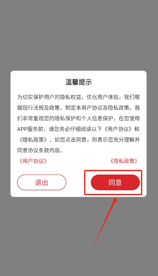 1、打开执行信息公开文书后,会出现软件协议内容,仔细看看没什么问题就点击同意,这样才能继续下一步操作进入软件。