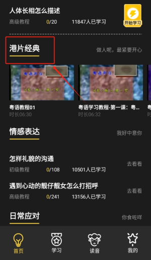 4、平台特别关注零基础学习者,设计了循序渐进的课程,引导用户从简单到复杂逐步掌握粤语,为他们打开通往粤语世界的大门。