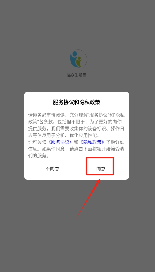 2、打开后会弹出软件协议,仔细看一遍内容没什么问题,就点击同意,这样才能继续操作,进入到登录的页面。