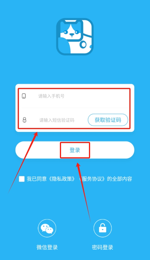 4、在登录页面输入自己的手机号,点击获取验证码,收到后把验证码填进去,确认无误后就能登录成功使用软件了。