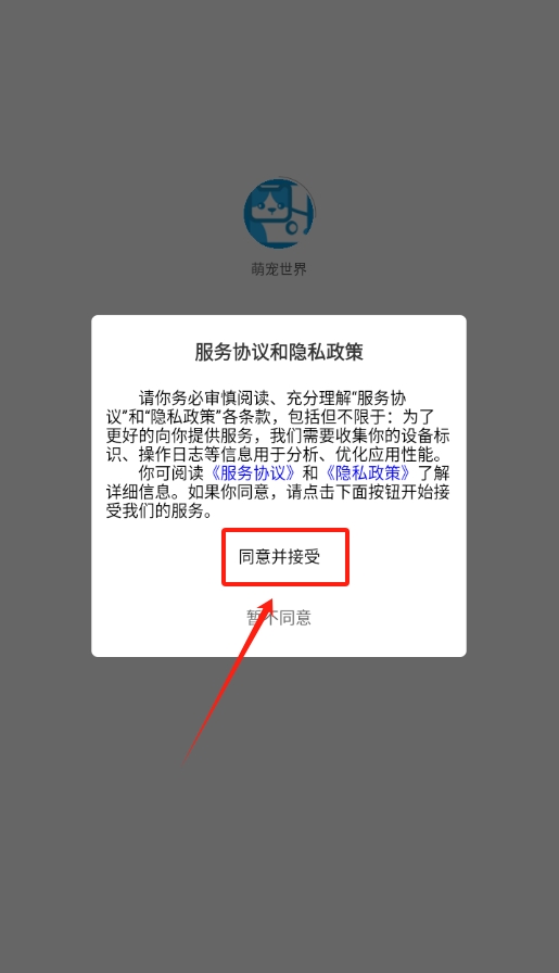 1、下载安装萌宠世界后打开,稍等几秒进入初始界面,整个过程很顺畅,没有复杂步骤,很快就能准备好进行后续的登录操作。