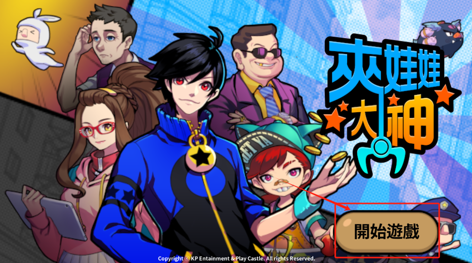 1、点击右下角开始游戏按钮进入游戏,注意看角色形象和版权信息。