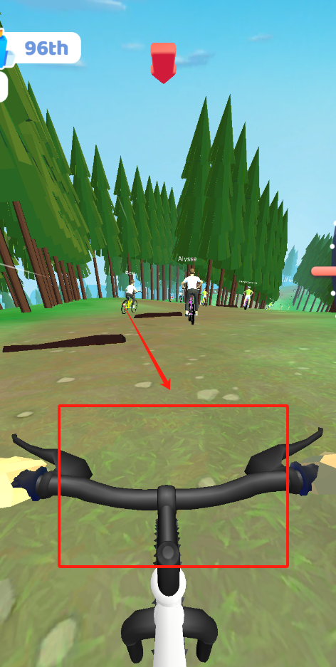 2、骑车排名96别落后,红箭头指方向看前方,握紧车把跟紧前面选手别掉队。