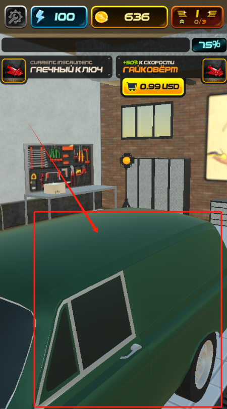 3、用工具墙上的扳手和电动螺丝刀修理车辆,注意工具价格和使用效果差异。