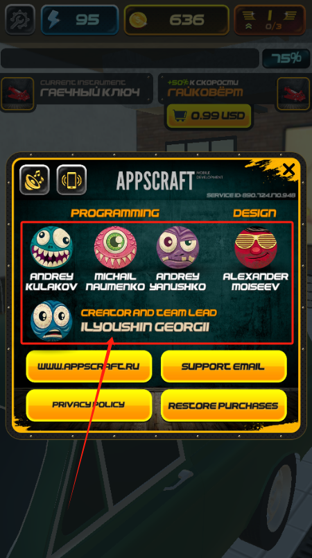 4、查看游戏制作团队信息,点击底部按钮访问官网或调整隐私设置等选项。