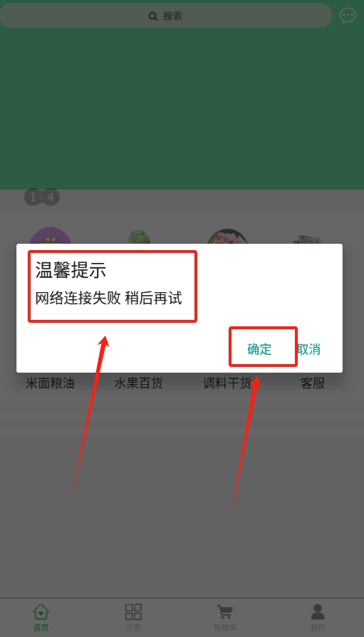 3、要是出现网络连接失败的情况,直接点击确定,然后重新连接网络,多试几次,一般就能连上了,不麻烦。