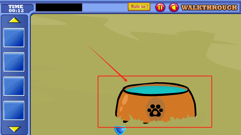 4、瞅橙色宠物碗找线索,蓝色水里或许有玄机,按箭头提示探索别错过。